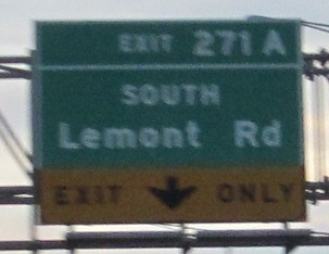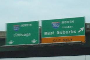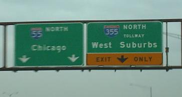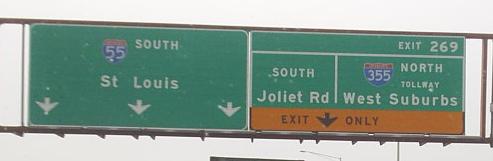 The reconfiguration of the I-355 interchange killed off any button copy related to the Interstate, but these signs from the Exit 269 1-mile advance remain.