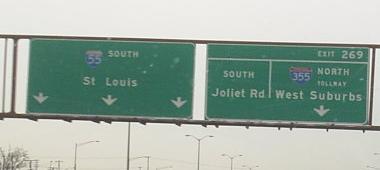 All SB, and all but the first courtesy Doug Kerr, heading off Exit 269 and back on in 2006, after dropping off and picking up traffic to and from I-355.