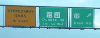 IL 68 WB at and just past US 12, which is where IL 53 leaves it after an oh-so-brief duplex and runs with US 12 back to its old alignment on Hicks Road, courtesy Doug Kerr. And yes, IL 53 did in fact just have an interchange with US 12. If you noticed that, you're doing better than IDOT (in terms of its routing of 53) already.