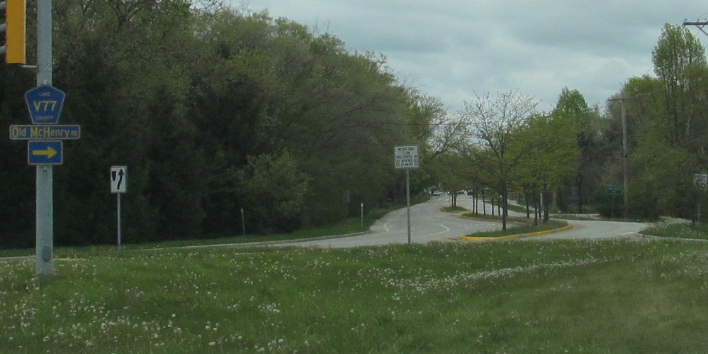 McHenry Rd. is IL 83 heading north from Wheeling. Its old alignment continues here as a county route. The northern terminus of IL 53 messes with continuity, requiring two turns to stay on McHenry. Long ago, what's now 53 fed into Robert Parker Coffin Rd., the only street named specifically after a corpse, and McHenry stayed a single road with no northern extension of 83. IL 53 was probably constructed to bypass Long Grove.