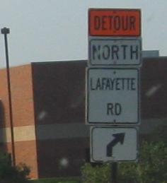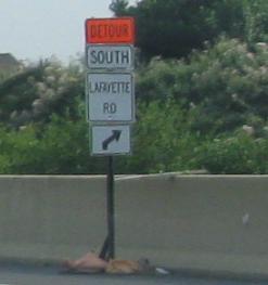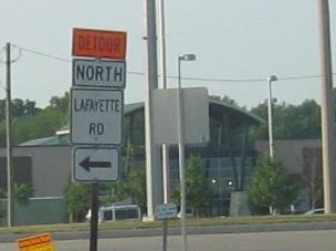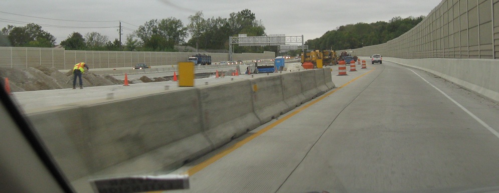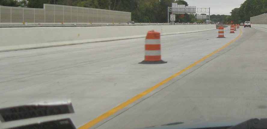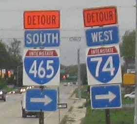 Makeshift road trailblazers directing traffic onto the Exit 23 ramp at 86th St. (see the photos on the I-465 main page).