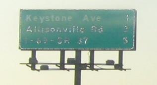 Turning from north to west and losing SR 37 as well, coincidentally at Exit 37. The new-looking Keystone Ave. on the last photo's sign was probably SR 431 in button copy. That route disappeared in 2007.