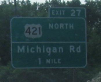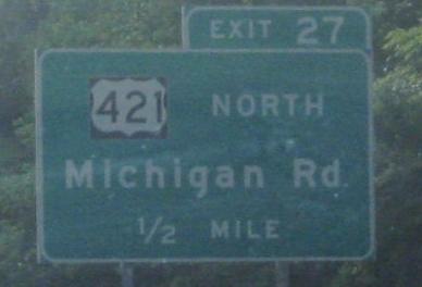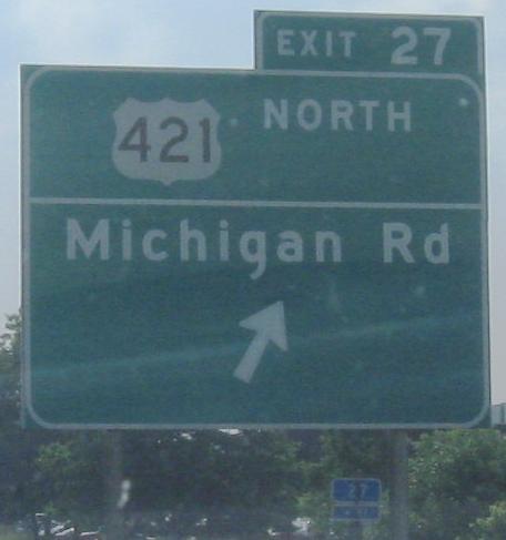 Turning the corner, two button copy signs for US 421 at Exit 27 that are gone now, courtesy Doug Kerr.