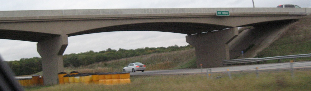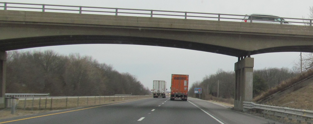 Still a common overpass style along I-70, but one that's slowly disappearing because these original structures are aging.