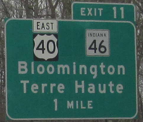 As of January 2011, US 40 was routed out of Terre Haute and onto I-70 for the ride around the city to Exit 11, which explains nearly half of these photos. The SR 46 shield was moved aside for Exit 11. The rest are on here for button copy or black backgrounds.