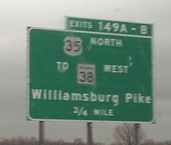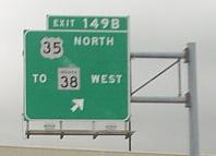 These were all taken on January 10, 2006 by a Digimax 301 camera, and are courtesy Doug Kerr. However, I since replaced the 1-mile advance sign for Exits 156A-B with a Bill Donovan photo. You'll see - it looks bigger and shinier than the others. US 35 clearly isn't an east-west route (just look back at Exit 149 if you don't believe me). Among all of the BGS's, only the Exit 151A advance sign isn't button copy, but I included it for the NJ-style shield.
