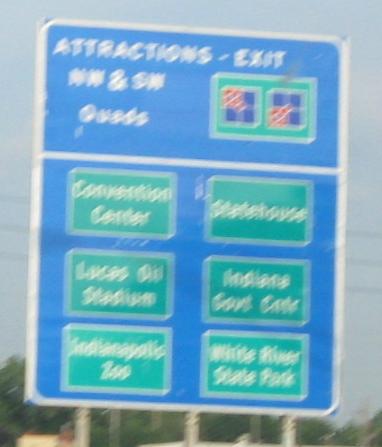 Past the home of the Colts before I hit I-65 - see the big link below for their concurrency. The first photo exposes, in button copy of course, a practice I knew nothing about - partitioning downtown Indy into quadrants.