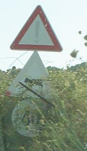Leaving Montalbano Elicona, you slow down, narrow, and then try not to hit the cows. The sign is obscured by the locals, who want you to hit their cows so they can collect the insurance money. Maybe I lie.