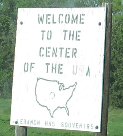 The purpose of K-191 is to bring people to the center of the 48 states of the USA (just pretend it's 1958 for this caption). I don't know how that was determined - a very large scale model and a very sharp pin? - but it has all sorts of plaques and a tiny church (U.S. Center Chapel), so it's clearly legit. Lebanon, on the other hand, is clearly a tourist trap. I imagine there's a very limited set of souvenirs that pertain to this location.