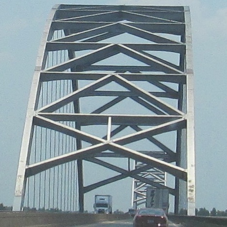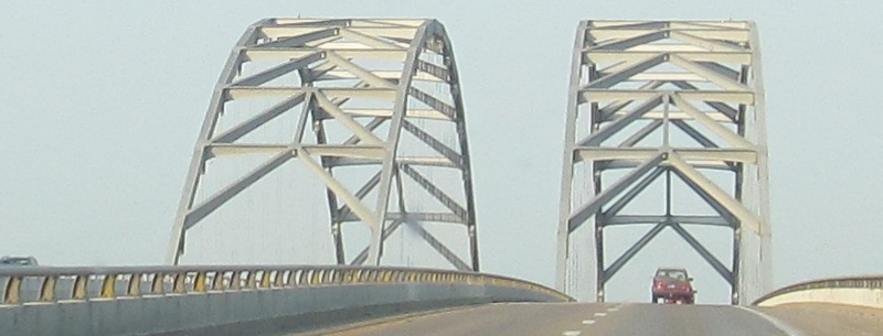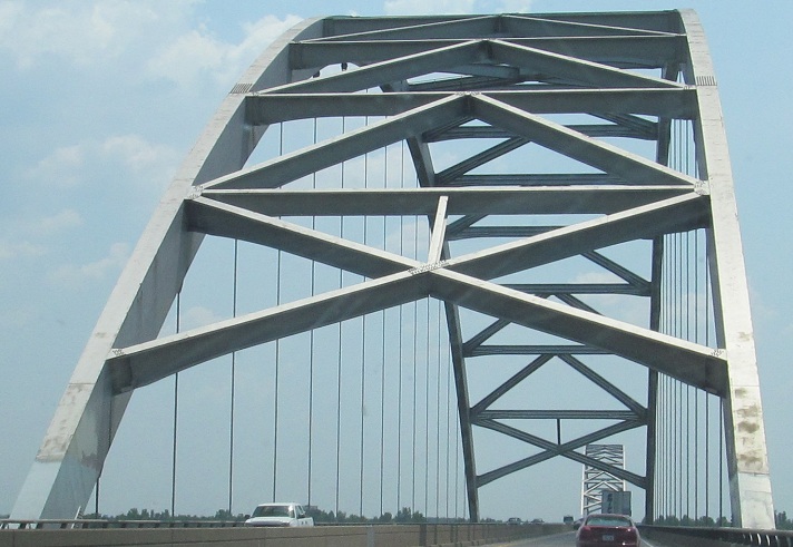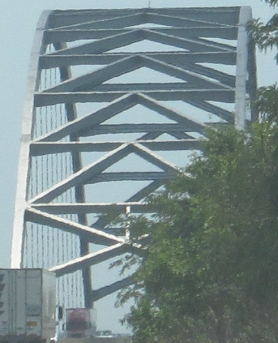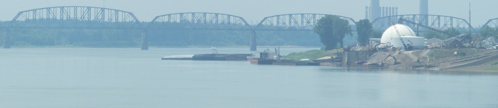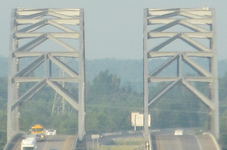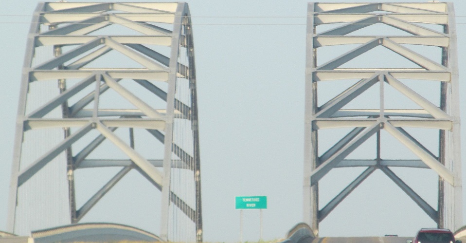 The bridge over the Cumberland River is quite boring, but there's a beautifully tranquil view to the north. That river drains Lake Barkley, which, along with Kentucky Lake, was formed only when the rivers were dammed by the Tennessee Valley Authority during the Great Depression.