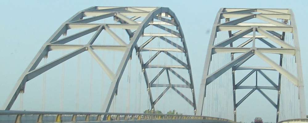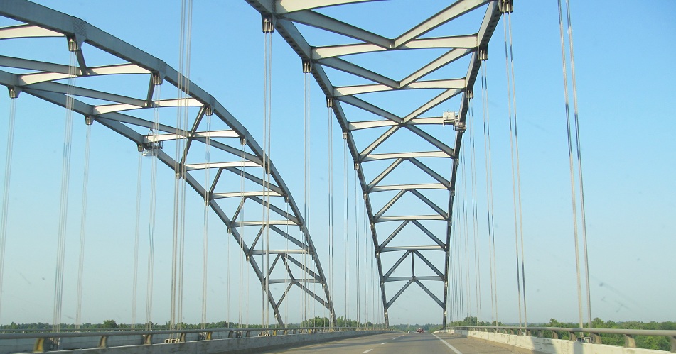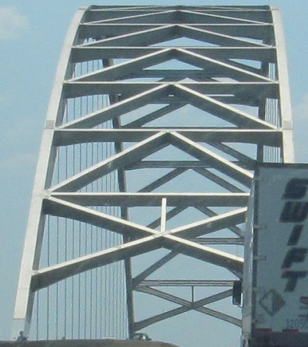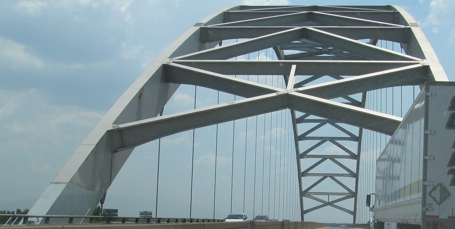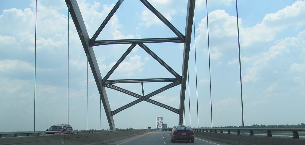 EB across the Ohio River from Illinois. To the west (because EB is really heading south, and I-24 overall is a NW-SE route), there's a railroad truss from Metropolis, IL (on the right).