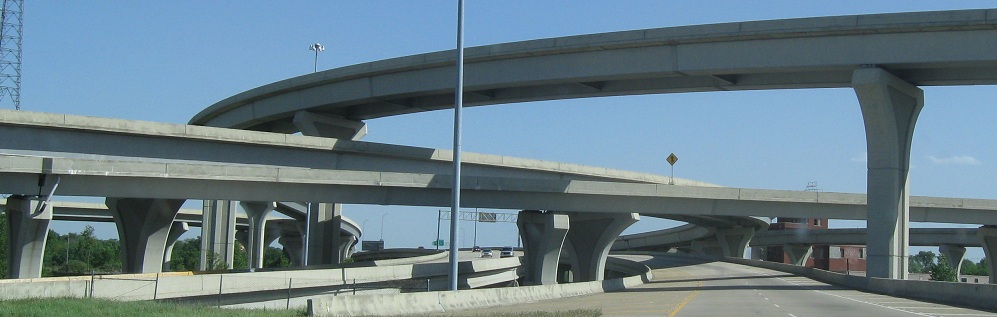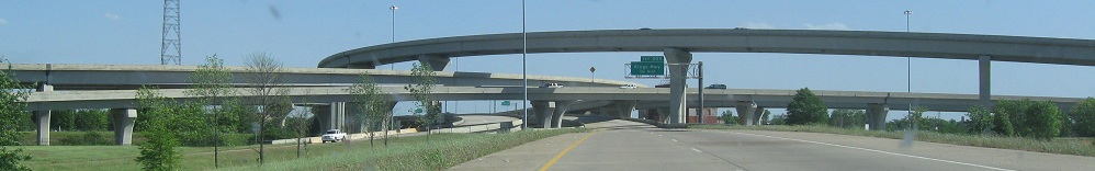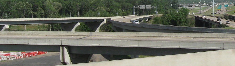From SB to EB on the top level of the Exit 201 stack interchange with LA 3132, the Inner Loop Expressway of Shreveport.