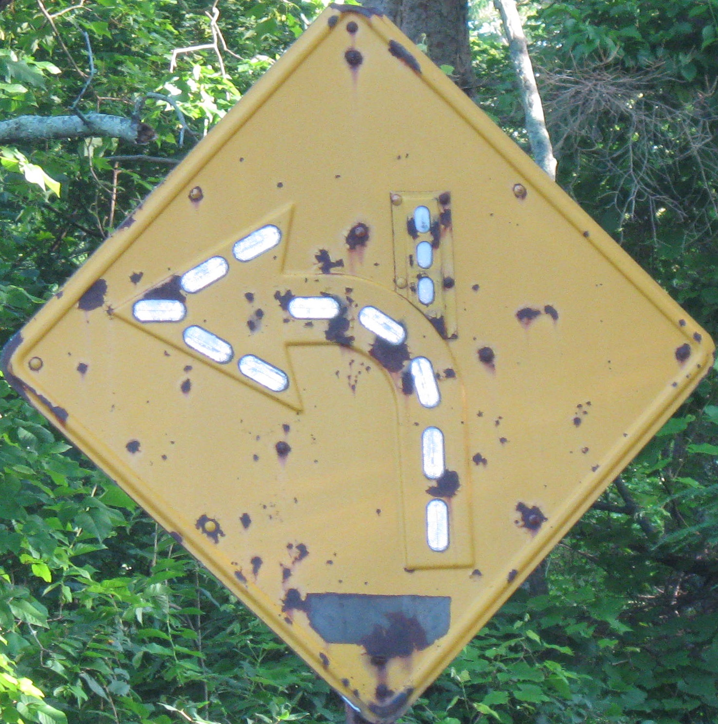 Continuing east to a bridge just before MA 32. If you really like old signs, this is the road for you. It has at least four more glass-reflector signs than almost every other road in the country. It also has a newer junction sign that doesn't work as a diamond but doesn't belong as a square.