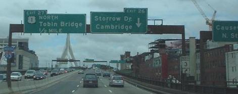 This was in the heart of Boston at Exit 26, what once was the Storrow Drive exit. Once the Leverett Circle Connector opened, the old SB ramp was dismantled, and associated Big Dig work required that SB traffic on the lower level of the Central Artery split in two.