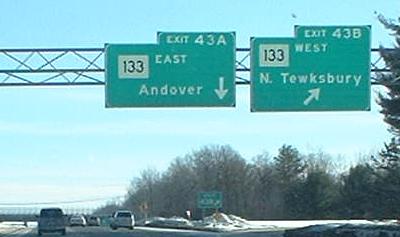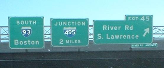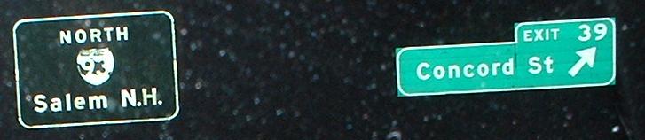Heading NB from Boston, the first sign can be compared to one on US 3 - this has a flat shield and, of course, different distances. The second is one of several left with the shield in tatters. The last one is just cool.