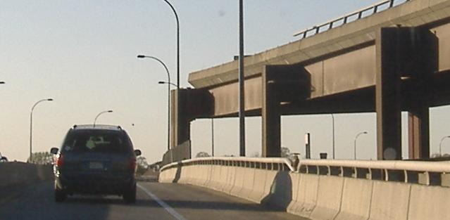 Northbound signage on the old artery - with a tremendous shot of the old bridge as well as the new Zake rising next to it! The first photo is courtesy HNTB Corp, and the others are courtesy Doug Kerr.