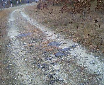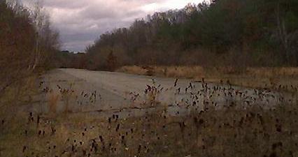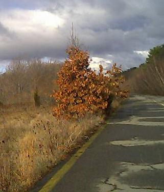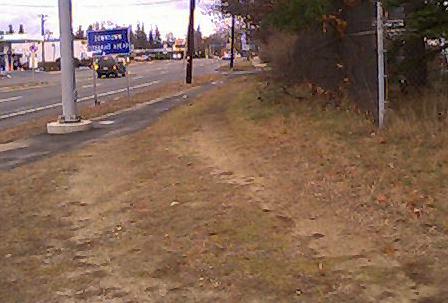 The ramp path is better developed in 2012, and traces of the old road are fainter as newly planted trees overgrow it. Take heart, for the path does curve around to the old alignment. The last photo looks back at MA 113.
