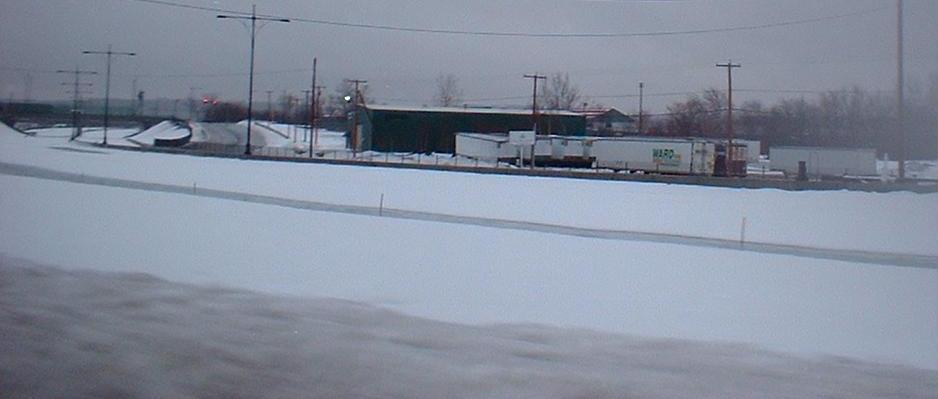 Shots of the freeway that was about to open, in February 2004. The lampposts look lovely, and probably all that was needed over this approximately two-mile stretch was the final coat of pavement and some landscaping.