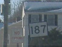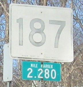 MA 187 was supposed to cross the MA 57 freeway here, but the latter was never completed. MA 57 now jogs north along 187 to get back to its old route, most of which is MA 147 to the east. Yes, that's a lot of 7s. Curiously, 147 ends where 57 left Mill St. along Springfield St., so just under a mile of state highway is missing to connect the two. There is little in the way of extending the freeway, but little push to do so.