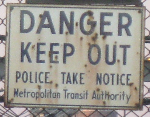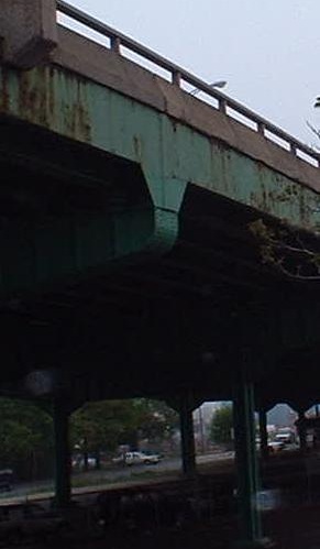 Look to the right when exiting to Frankfort St. and you'll hopefully catch this original (to the freeway) sign on the fence over the MBTA railroad. The sign, of course, dates back to the days of Charlie and his dumb wife who handed him a sandwich instead of a nickel.