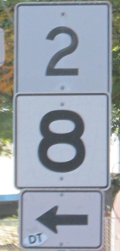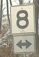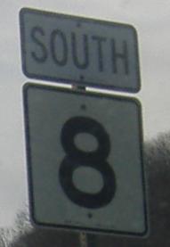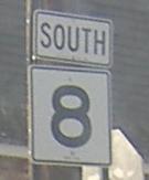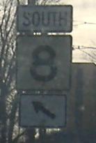 Old-font Pike shield, unfortunately without an arrow through the hat, southbound below an 8 shield.