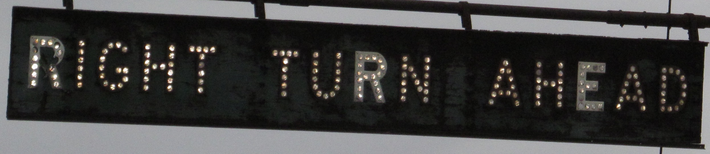 Look at the first photo, just above the tan NB car, and you'll see something sticking out of the signal pole. Turns out it's not part of the pole, but a sign assembly, and it looks like this. No telling how old this black button copy is, but it's old enough that the white sign background has also faded to black. The sign's so faded, that the replacement R's (black button copy is very uncommon, so they're white for ease of procurement) stand out well against the background, while the black blends right into what it once contrasted with. Click for a closeup.