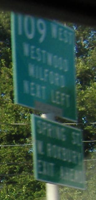 The photos on this page are from the way US 1 went until 1990. Instead of the current I-95/I-93/MA 3 multiplexes, 1 kept on going toward Boston, around the Emerald Necklace on such poetic roads as the Arborway and Riverway, up Park Drive (SB) and the Fenway (NB, and much less poetic if you know what fens are) to Storrow Drive via the Charlesgate, and then crossed the Charles River with I-93 between Exits 26 and 27. Of course, the MDC still thinks it goes this way - some of the following signs are newer than 1990. If you weren't careful, instead of going on Park you might accidentally end up on Boylston Street, which is actually a shortcut for the Riverway (so you were better off losing Route 1). I have no idea how good signage was once, but now, Park Road is one lane and there are no US 1 signs - the two-lane Boylston looks much more like a major road.