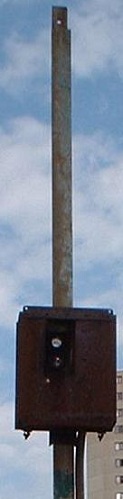Also at Western are these two odd contraptions. One is a set of posts that might have held some sign - but it couldn't possibly have been facing traffic in a useful way. The other is a box with a couple of lenses, facing NB Western Ave. traffic. It might be a traffic counting camera, but there's not much traffic to count. Whatever it is, it's pretty damn old.