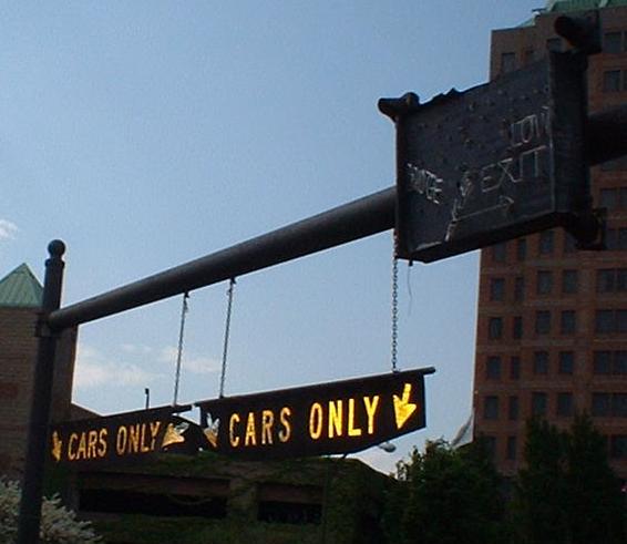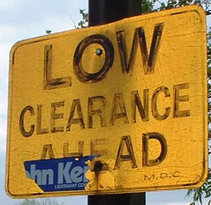 A barrage of signs greets drivers entering EB Storrow Drive after Cambridge Street, including this beautiful truck-warning air horn. The MDC always made things weird.