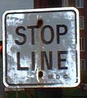 These signs are on the beautiful old Western Avenue bridge, which is one-way SB (NB traffic toward Central Square in Cambridge uses River Ave.). The STOP LINE sign is typical of those that the MDC used to post.