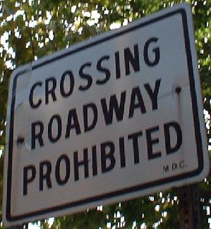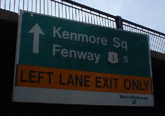 The famous REVERSE THE CURSE, mounted on the Longfellow Bridge, on Storrow Drive WB just after it stops being Embankment Drive. There of course is a button-copy V under the S, but it's greened over. Naturally, the MDC didn't want to replace or repair this sign... but it sure didn't seem to be working. After the Red Sox finally won in 2004, there was an elaborate ceremony to take down the sign. Two out of three lanes were closed, backing traffic up even onto I-93, but of course the ceremony is more important than keeping traffic moving... While it existed, it matched signs on Soldiers Field Road and MA 2/US 3 as the only MDC button-copy signs I know of to still exist, and some of the only copy left in all of Massachusetts. As long as Big Dig paraphernalia continues to line the walkways crossing the Central Artery swath, though, there will be easily accessible photographs of early signage that can join these.