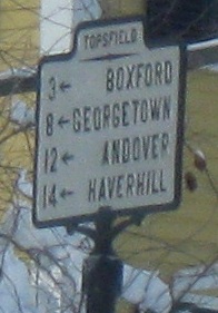 Speaking of old signs, this one has the date right on it. You know what defines old? This sign uses RODS as a legitimate measurement. This may be the only instance of rods on a highway sign, by Glen St./Central St. near Rowley. I hope my velocipede has enough hogsheads of leaded to get us there.