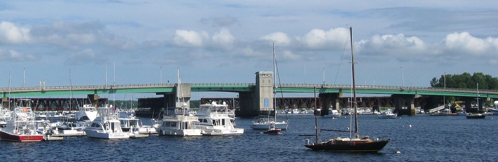 Looking west at the US 1 bridge and the abandoned railroad bridge behind it.