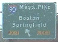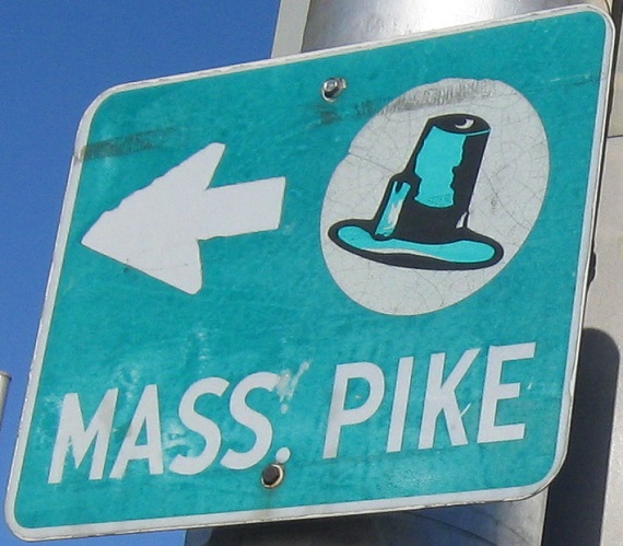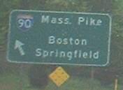 Old Mass Pike trailblazer at the first route junction entering the state.