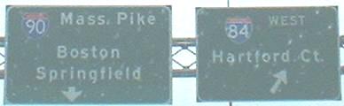 At I-84 Exit 3. Notice that I-84 EB is simply signed as I-90, since there are no other exits before you get to the Mass. Pike tollbooths. These signs are gone now.