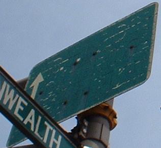 Both routes had old signs in Westfield, courtesy Doug Kerr, but these are gone now. The only old shield remaining in Westfield has a black background about the width of that old arrow, visible if it were daylight.