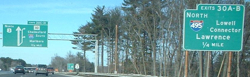 All this construction signage just might be left over from the recent widening of US 3. I love that cool diagrammatic in the background of the last photo. MA 110 is the surface street into Lowell, paralleling the Connector. This is a rare five-way interchange with all movements possible. The Lowell Connector was once Business Spur 495, but is now unnumbered.