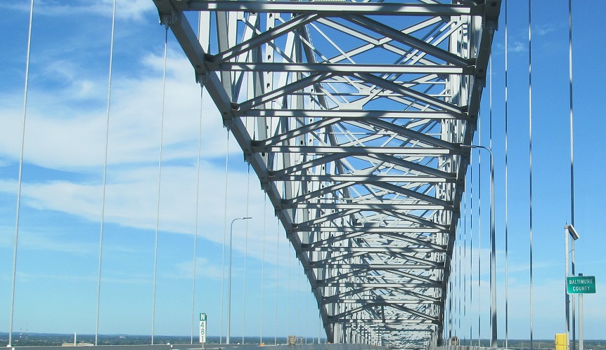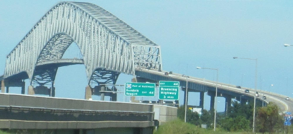 The (Francis Scott) Key Bridge carries I-695 across the Patapsco River at the exit to Baltimore Harbor. It opened in 1977, a critical link in the Beltway.