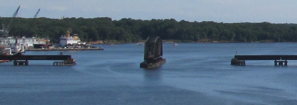 I-695 and the parallel CSX railroad to the south both cross Curtis Creek on a drawbridge. The difference is that Interstates aren't supposed to, which is why this is technically MD 695.