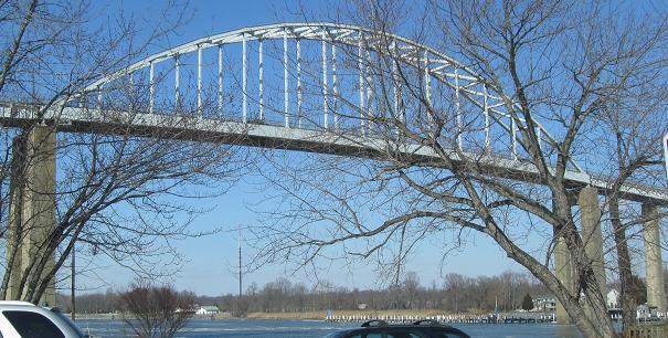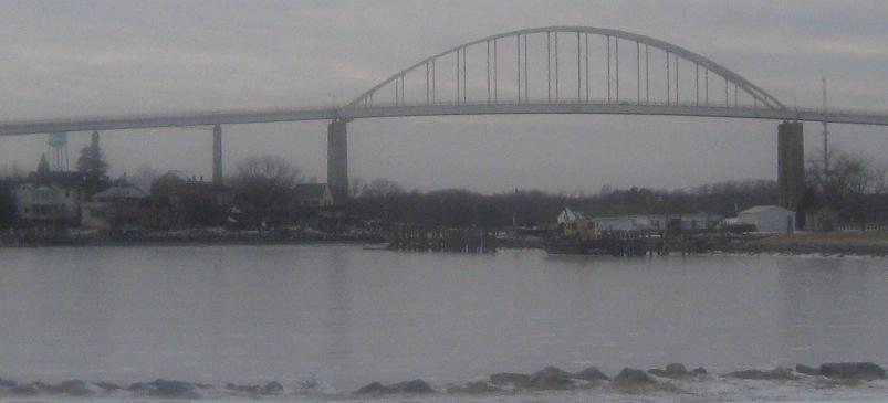 Driving across the bridge southbound with a look at the C&D Canal to the west.