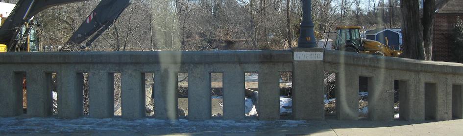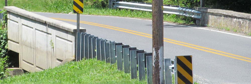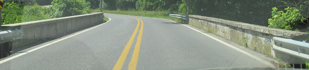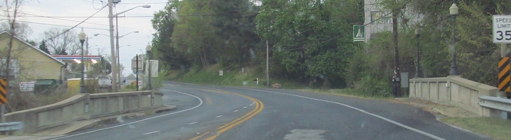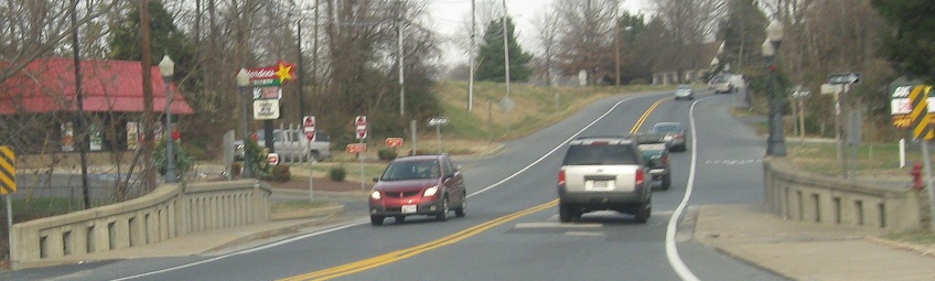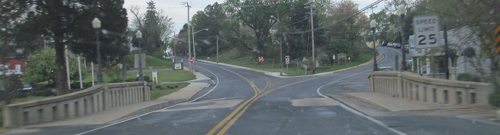 The 1-way pair comes back together at the south side of town just in time to cross Mill Stream Branch.