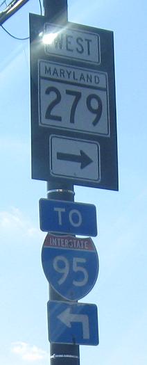The SB one-piece sign says MD 279 is WB, but then the reassurance says it's SB. Reassurance is wrong.