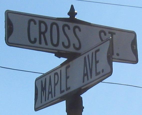 Older street signs at the corner with MD 289 in the middle of Chestertown.