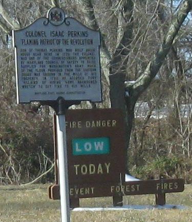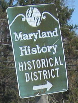 The historical sign is across from the MD 19 terminus at Church Lane.
