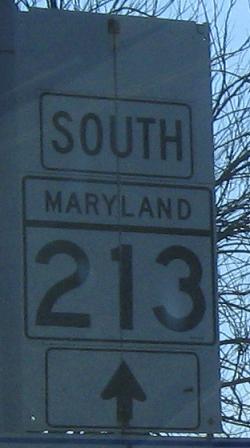 NB at the beginning of the road (at old US 50, MD 662) toward what I assume was once mistakenly called Centerville. MD 213 is so numbered because it was once US 213, which continued down what are now old alignments of US 50 to Ocean City. US 213 was THE route on the eastern shore; US 301 didn't make it past Baltimore until the 1960's. US 50 helped kill US 213 when the Chesapeake Bay Bridge was built by taking over a lot of the route's raison d'être and disconnecting it from its parent 13. When US 213 finally died in the 1970s, rather than extend MD 280 south from US 40, the 213 number was retained and extended up to Pennsylvania. It becomes a completely different number (841) in PA, anyway.