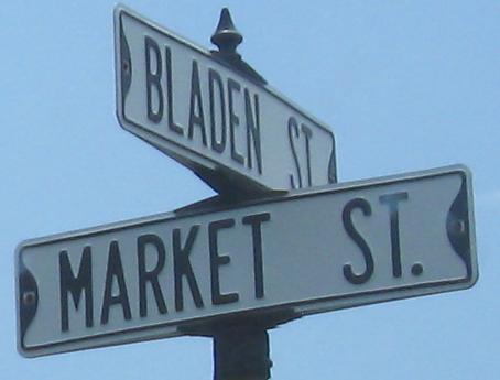 MD 267 turns right from Bladen St. to Market St. and finds this old sign. Wait, Charlestown is to the left? Then where am I?