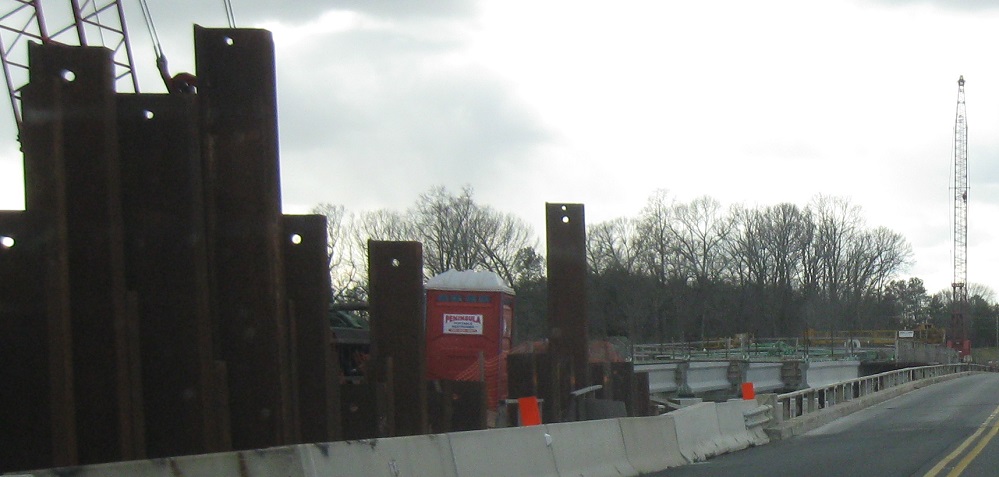 Looking north at construction of a new Tuckahoe Creek bridge. Hope you like it, because that's all I found photoworthy on MD 328.