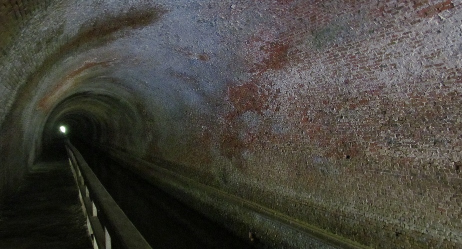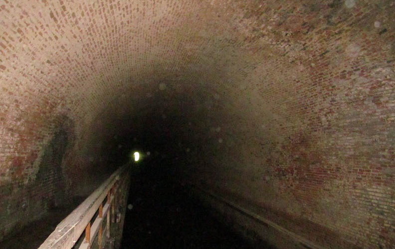 Walking north from the parking area to the 3,116.67 foot long canal tunnel.