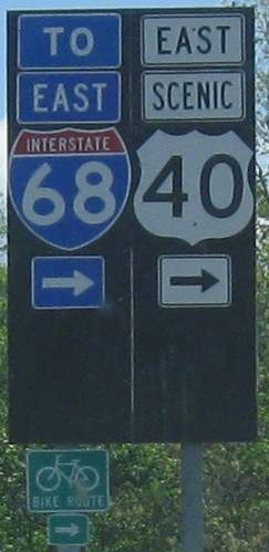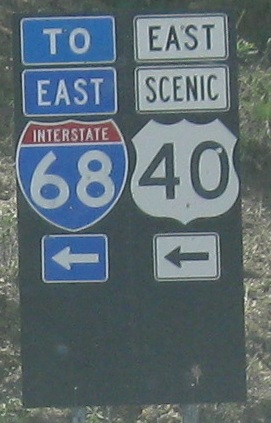 US 40 is actually on I-68 the whole time, and Scenic US 40 is a separate route. That means that until the next exit, there is a US 40/Scenic US 40 concurrency.
