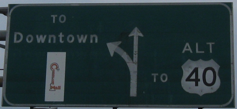 Bedford St. is the SB pair to Frederick St., and the definitely-old BGS in the first photo is the pair to the previous NB one. Alt. US 40 follows the National Pike on the north side of the railroad, which is why the exit on the south side just mentioned Queen City Dr.